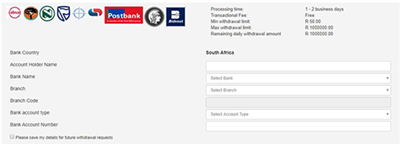 Provide us with your banking details and enter the amount you’d like to withdraw